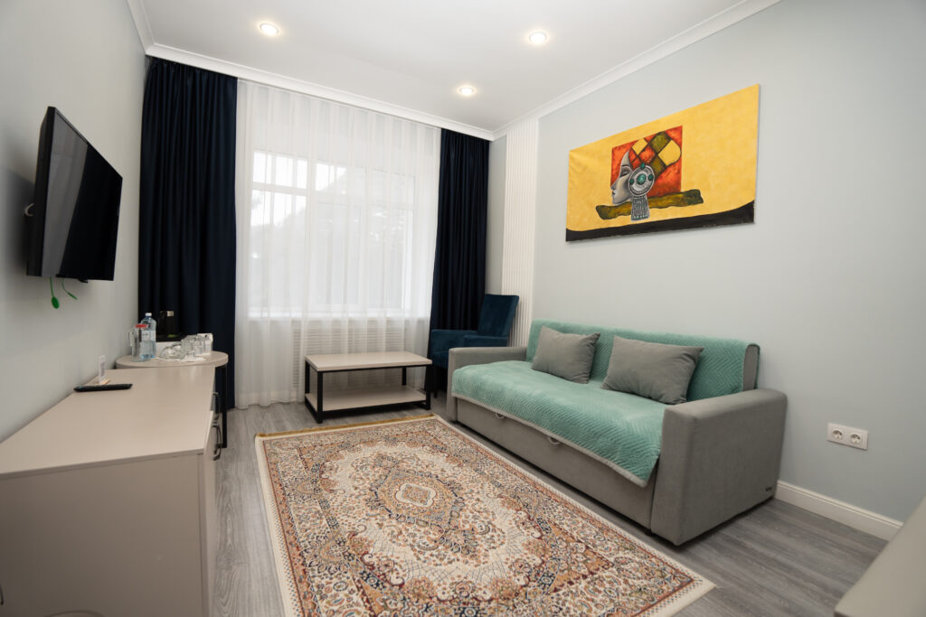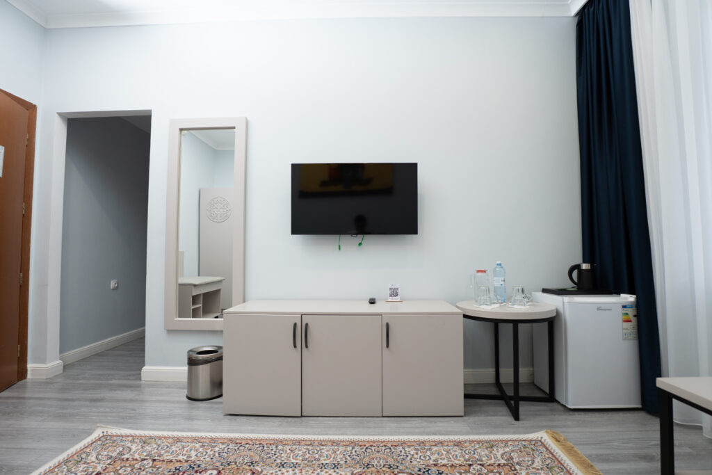 VIP-нөмір заманауи әрі жайлы интерьерімен, 32,51 м² аумағымен және керемет демалыс жағдайымен ерекшеленеді. Әрбір ұсақ-түйекке дейін ойластырылған сәнді дизайн нөмірге ерекше жайлылық береді.