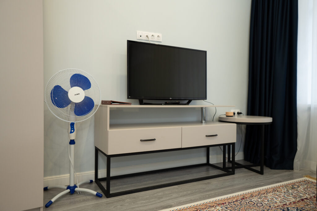 Нөмірде теледидар, Wi-Fi, шайға арналған жиынтық, махровый халат пен тәпішке бар.