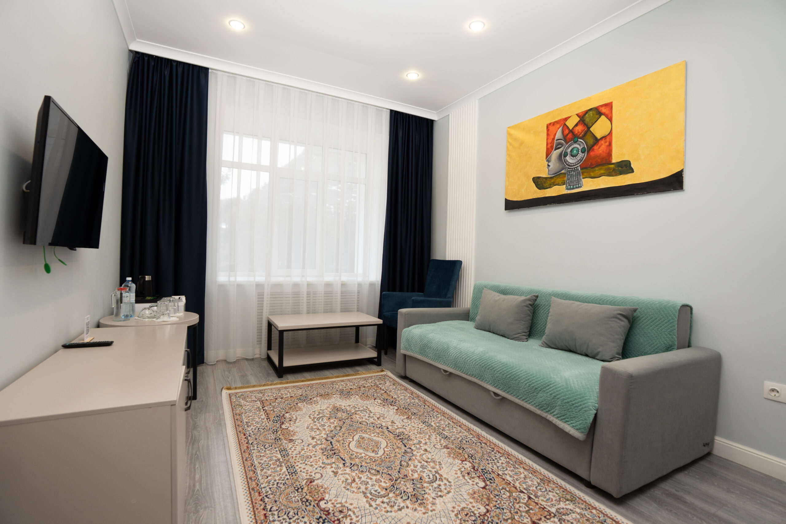 VIP-нөмір заманауи әрі жайлы интерьерімен, 32,51 м² аумағымен және керемет демалыс жағдайымен ерекшеленеді. Әрбір ұсақ-түйекке дейін ойластырылған сәнді дизайн нөмірге ерекше жайлылық береді.